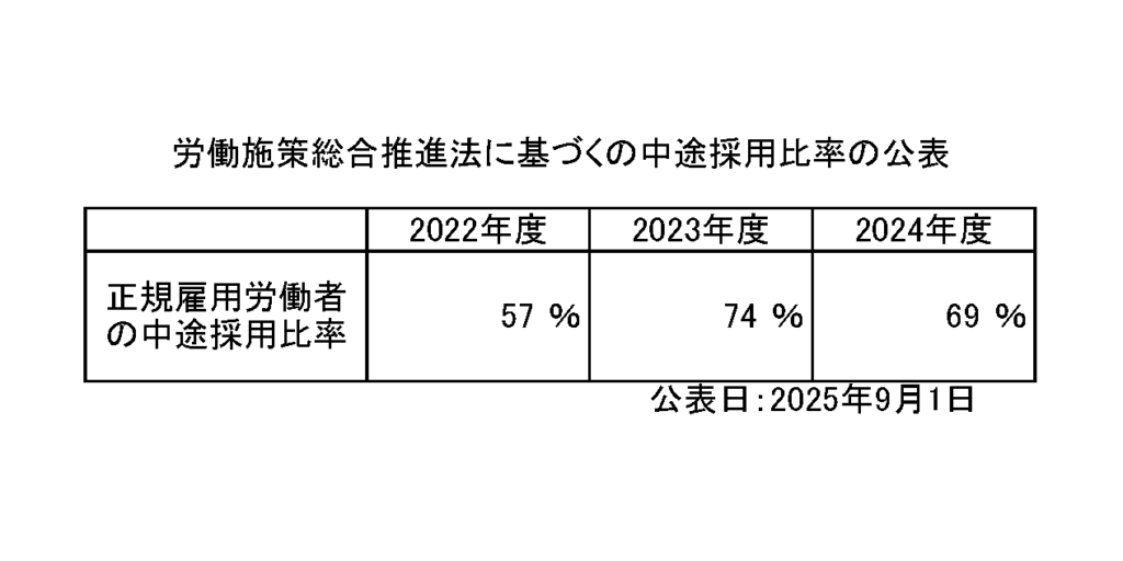 医療法人青仁会における直近3事業年度の各年度について、正規雇用労働者の中途採用比率を以下の通り公表いたします。